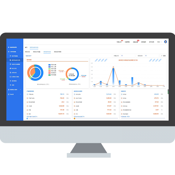 通过项目三算分析展示中标额,目标成本、实际成本、目标利润。 项目三算分析:三算分析/收支分析/项目现金流管理